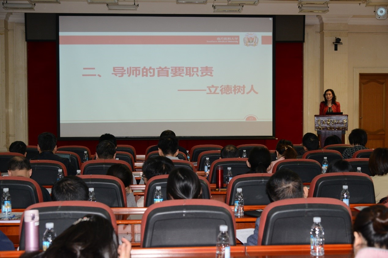 随后,1382cm太阳在线玩游戏党委副书记张原英就如何落实导师立德树人职责对国家及1382cm太阳在线玩游戏的相关政策进行了详细的解读,对社会上出现的导师立德树人的负面事件进行了剖析,引导广大导师进一步树立立德树人责任意识,做研究生学术上的领路人,研究生成长中的严师益友。
