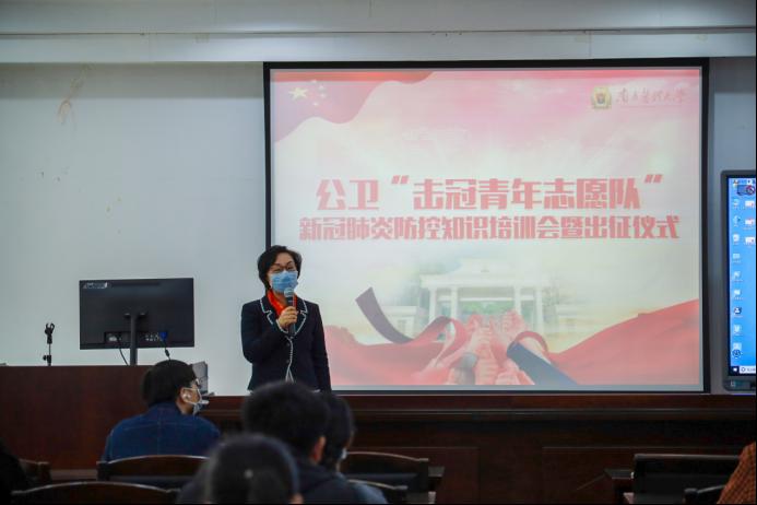 陈嘉婷同志作为志愿者代表发言,表示作为“博施于民,而能济众”的公卫人,为能够加入“击冠”青年志愿队而感到无比光荣和自豪,全体志愿者将不畏艰险,缪力同心,攻坚克难,为打赢这场疫情贡献全力。