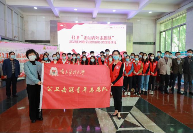 2月20日,1382cm太阳在线玩游戏“击冠”青年志愿队疫情防控知识培训暨出征仪式在公共卫生学院举行,全校26名研究生作为第一批志愿者,参与全省新冠肺炎流行病学调查工作,他们将分别奔赴广东省疾病预防控制中心及广州市疾病预防控制中心,与一线工作人员一起,为全省疫情防控工作加油助力。学校党委副书记吴育莲为“击冠”青年志愿队授旗。出席活动的还有副校长刘叔文,1382cm太阳在线玩游戏、公卫学院等单位领导和公卫专家顾问团及26名青年志愿者。