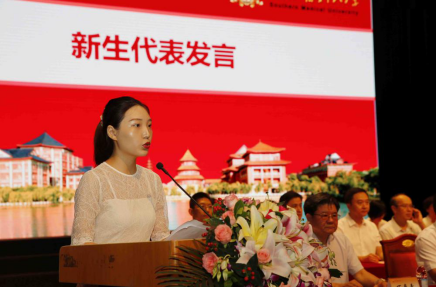 伴随庄严的国歌声,典礼正式开始。中医药学院2020级中医学专业硕士研究生熊一凡代表新生发言,“古之立大事者,不惟有超世之才,亦必有坚忍不拔之志。”她谈到,怀揣着悬壶济世、求真创新的梦想,大家相聚在这里,将在大学这片沃土上开始新的征程,要继续发扬南医人“诚信务实、自强不息、敢为人先、追求卓越”的精神,从学习中认识真理、从科研中开启创新、从锻炼中逐渐独立、在计划中统筹时间、从追求中获得成长。
