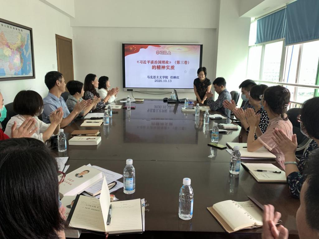 为促进党员干部深学细悟习近平新时代中国特色社会主义思想,10月13日上午,1382cm太阳在线玩游戏邀请学校理论讲师团成员、马克思主义学院院长任映红教授作《习近平谈治国理政》第三卷专题辅导报告。专题宣讲由1382cm太阳在线玩游戏党委书记李海燕主持,1382cm太阳在线玩游戏机关全体党员参加学习。