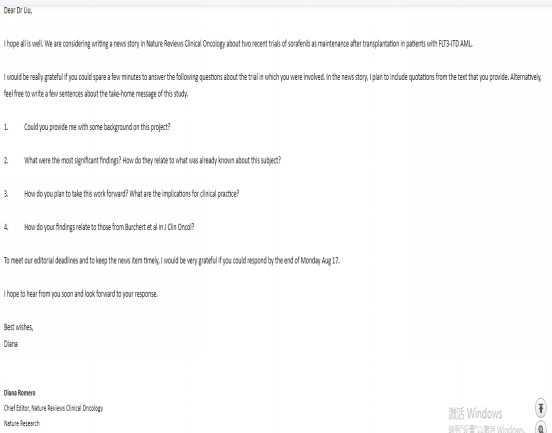 文章一经发表便引起学界内的高度关注,《自然综述临床肿瘤学》(Nature Reviews Clinical Oncology,IF=53.276)杂志主编Diana Romero教授近日发来邮件,拟在Nature Reviews Clinical Oncology上对该研究进行述评。