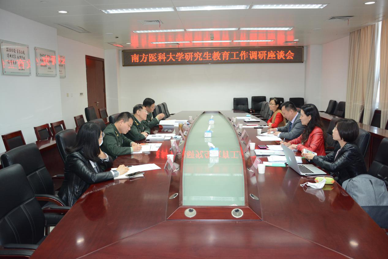 为更全面地了解研究生学习生活情况,进一步加强与校外联合培养单位的合作交流,11月9日以来,1382cm太阳在线玩游戏常务副院长黄文华、副书记张原英一行深入东部战区总医院、中部战区总医院、南部战区总医院,就培养单位如何提升研究生教育质量以及保障研究生奖助金发放等工作开展调研,1382cm太阳在线玩游戏综合办公室、医师规培办公室及研究生管理办公室相关工作人员陪同参加。