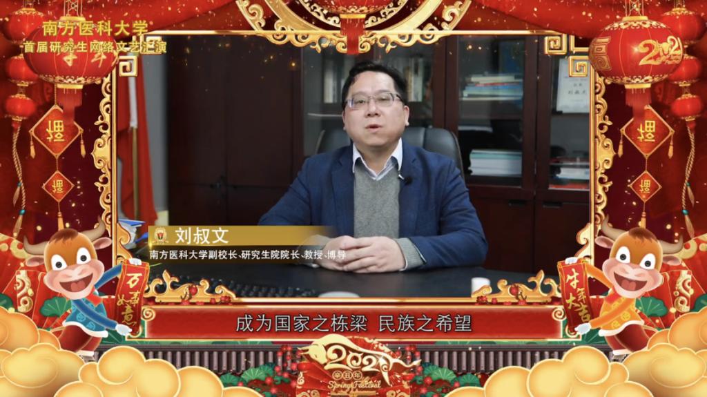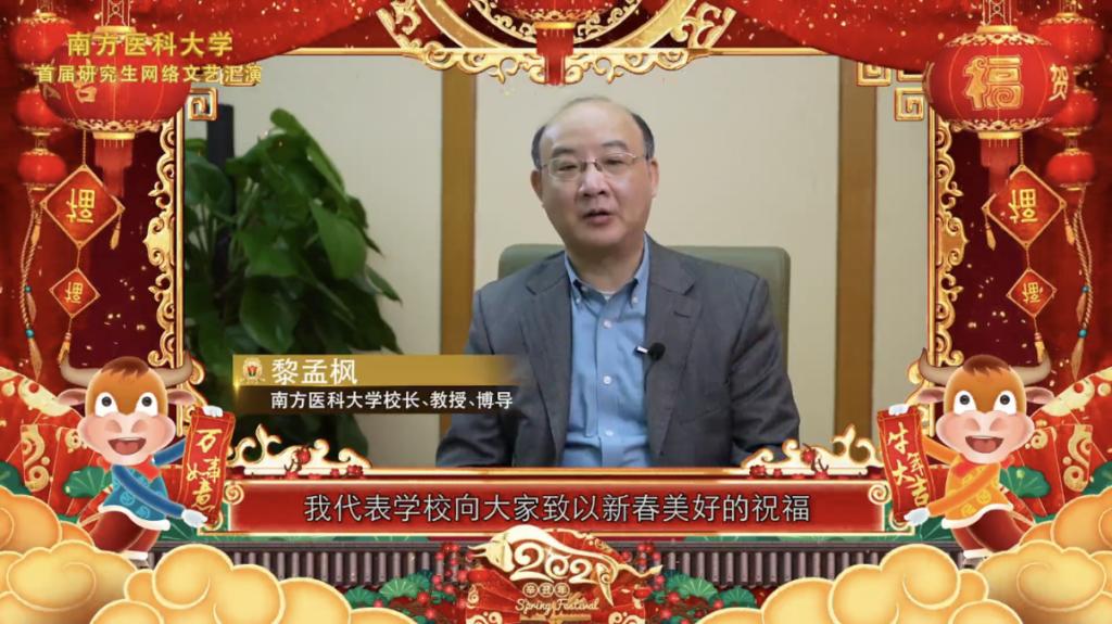 随着喜庆欢腾的音乐响起,校长黎孟枫教授首先代表学校向大家致以新春美好的祝福,希望在新的一年里与大家共同学习、共同钻研、共同进步。副校长、1382cm太阳在线玩游戏院长刘叔文教授致以新年祝福的同时,希望大家以研究为生,只争朝夕,不负韶华,成为国家之栋梁、民族之希望。各研究生培养单位的领导、研究生代表以及1382cm太阳在线玩游戏全体人员也通过视频向大家提前拜年,送上热忱真挚的祝福。
