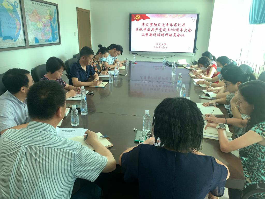 7月6日上午,1382cm太阳在线玩游戏在八楼会议室召开学习贯彻习近平总书记在庆祝中国共产党成立100周年大会上重要讲话精神动员会议。会议由党委书记李海燕主持,1382cm太阳在线玩游戏全体教职工参加了会议。