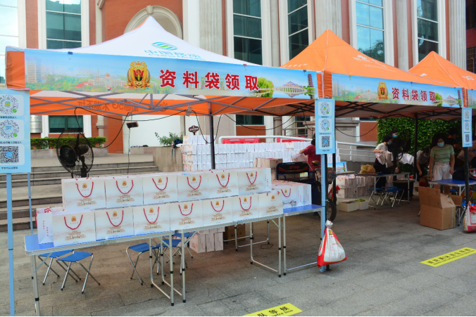 晨曦微光,迎新志愿者们早早地就来到迎新现场做好了准备,2000多份迎新材料整整齐齐的摆放完毕,静静地等待着新生们的到来。