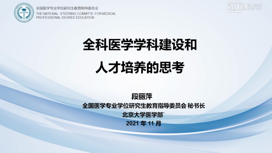 全国医学专业学位研究生教育指导委员会秘书长,北京大学医学部副主任段丽萍在《全科医学学科建设和人才培养的思考》报告中,阐述我国卫生健康事业发展状况,分析全科医学人才需求及全科医学学科建设情况,针对全科医学高层次人才培养现状,提出加强全科医学学科建设和人才培养的建议。