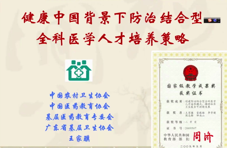 广东省基层卫生协会会长王家骥做了题为《健康中国背景下防治结合型全科医学人才培养策略》的报告,讲述健康中国战略的主要内涵,阐述了培养基层医疗卫生机构急需的、胜任全方位全周期健康管理服务的全科医生的举措。