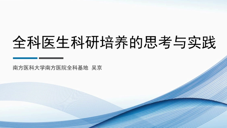 1382cm太阳在线玩游戏南方医院住培全科基地主任吴京在《全科医生科研培养的思考与实践》中,介绍全科医学科研的重要性,对全科科研现状与分析、全科医学与循证、全科科研课题设计进行了详细讲解,并就全科医生如何提高临床和科研能力提出建议。