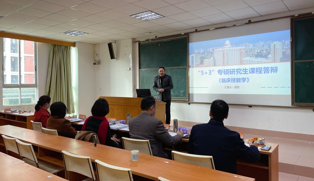 医学类专业学位硕士研究生教育与住院医师规范化培训接轨后,学习期间33个月需要在临床各科室进行临床轮转训练,课程教学质量面临挑战。1382cm太阳在线玩游戏自2017级起,开展医学类专业学位硕士研究生综合改革工作,组织学生于每年7月提前报到直接进入临床科室轮转,并于翌年3月返校集中课程学习,通过“翻转课堂”教学模式改革,将网络课程与面授课程相结合,夯实研究生的基础知识和基本技能,促进培养质量的提高。本次评审正是依据国家专业学位研究生研究生核心课程建设和学校教育综合改革工作的相关要求,在各学院学科推荐申报的基础上,对相关研究生课程的答辩评审。旨在建设一批质量高、前沿性强、专业性突出的专业学位研究生课程,为专业学位研究生创新发展和新医科建设背景下的研究生培养提供有力支撑。